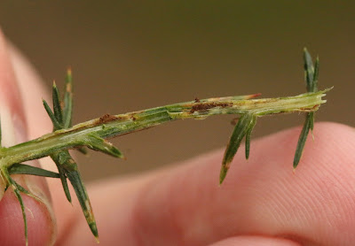 | This rather battered Broom on the edge of a forestry track had two mines of scopariella on - Willet Hill (Somerset) |